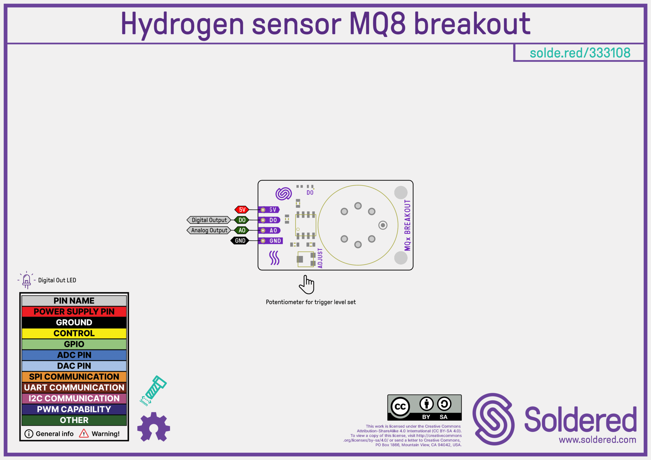 Hydrogen is all around us, and it’s very flammable. Its leakage can be very dangerous to both life and property. That’s why it's important to detect any leakage to prevent in the industry. To help with that, hydrogen sensors like the MQ8 breakout board are used. The sensor detects hydrogen at the range of 100-10000 ppm.